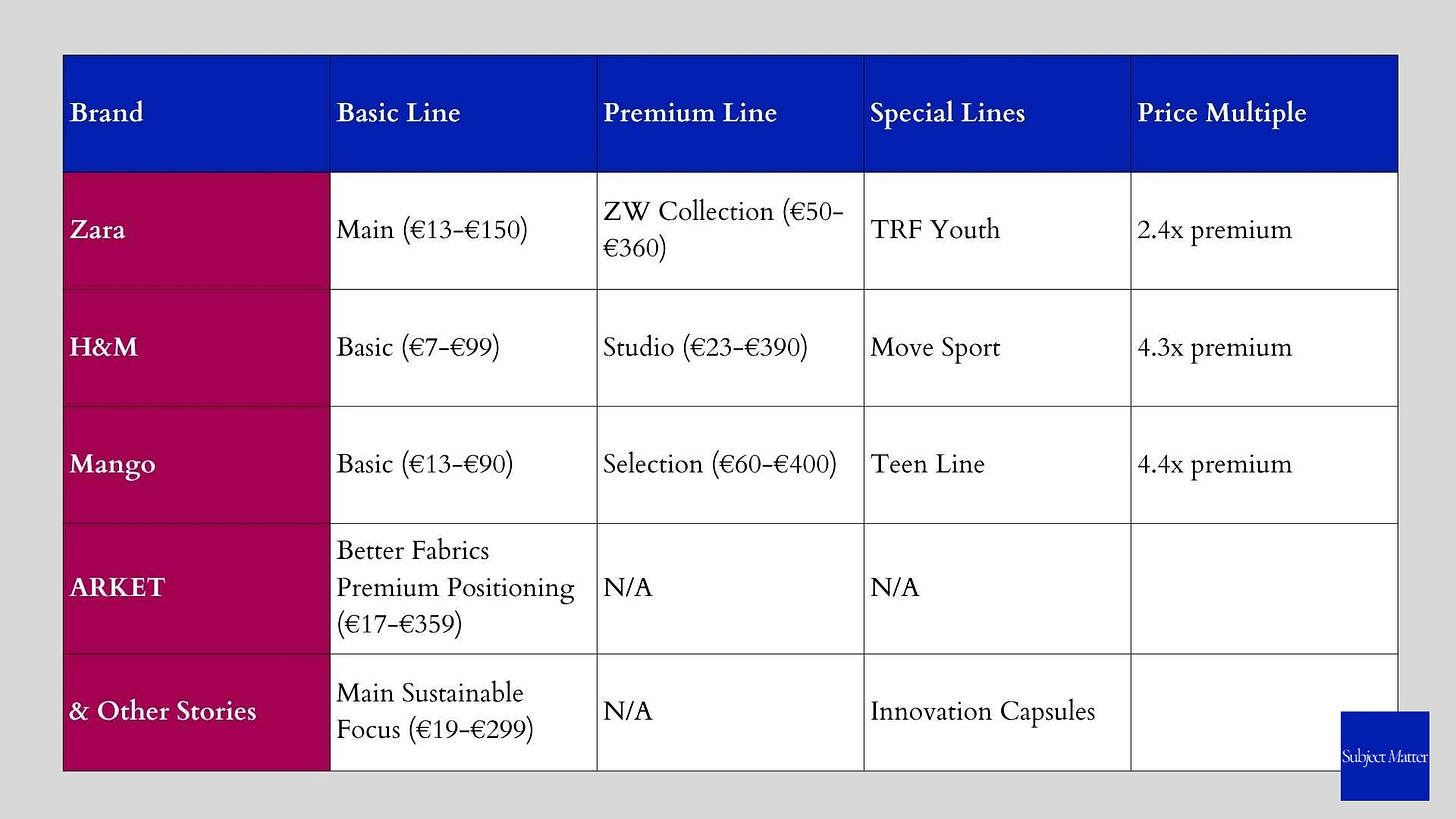 All fast fashion brands have deployed Premium lines like Studio (H&M), ZW (Zara), and Selection (Mango) are photographed like the pages of a high-fashion editorial, precise styling, dramatic contrasts, and minimalist settings that let high-fashion styling and lifestyle aspiration take center stage.