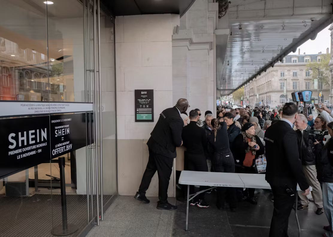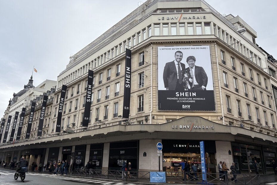 Paris just rolled out the red carpet for SHEIN, with a brick-and-mortar store, none other than the iconic BHV, stirring up drama that’s got government, activists, and fashion industry squirming. I must admit that this is physically painful, so let’s call it what it is: the world’s most infamous (ultra) fast-fashion brand cozying up to one of the biggest fashion capitals in the world in a attempt to clean its image.